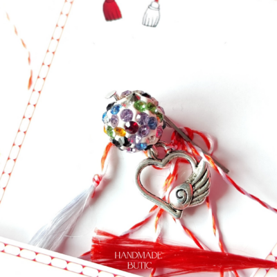 Martisor handmade inimioara si margeluta cu cristale- diverse culori